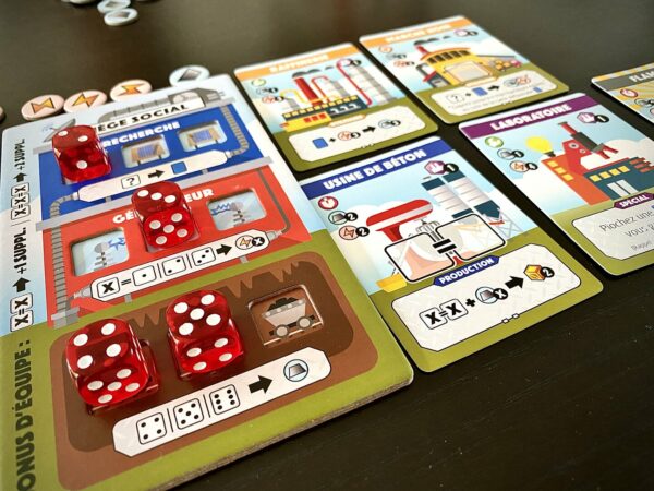 - Phase de travail : utilisez vos dés pour activer vos usines et produire.