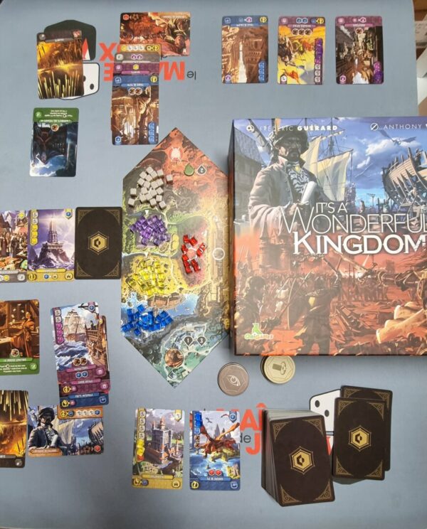 Découvrez It’s A Wonderful Kingdom, une version 2 joueurs du célèbre jeu It’s A Wonderful World, spécialement conçue pour les amateurs de stratégie en duel. Dans un univers médiéval-fantastique, vous incarnez un dirigeant d’un royaume en plein essor. Votre objectif ? Développer votre territoire, surmonter les menaces extérieures et prendre l’ascendant sur votre adversaire pour faire de votre royaume le plus prospère de tous.