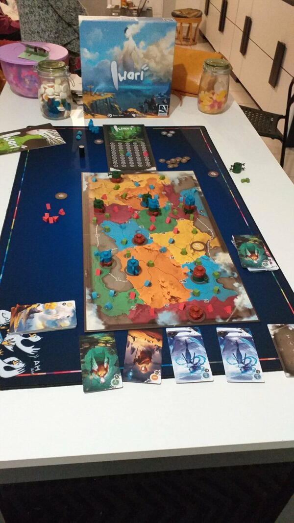 Dans Iwari, chaque joueur représente une tribu nomade explorant de nouvelles régions. D’une part, il faudra poser vos tentes avec soin. D’autre part, il sera crucial d’ériger des totems pour asseoir votre domination. Pour y parvenir, vous utiliserez des cartes de couleur afin de marquer votre présence sur le plateau.
