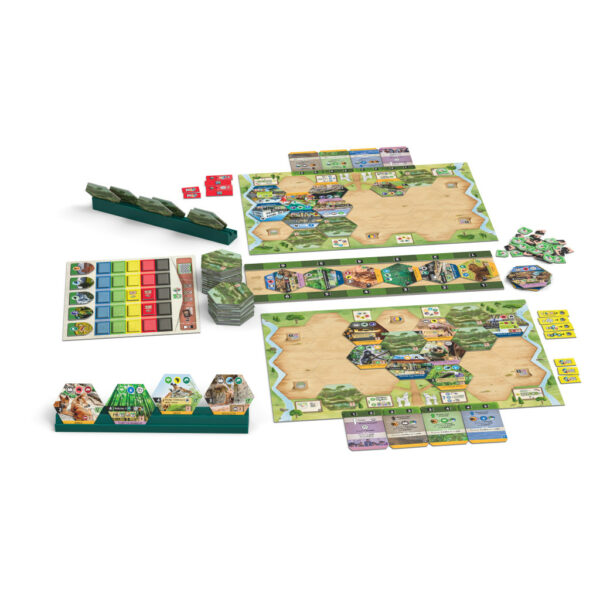 Un ensemble de 135 tuiles uniques de zoo vous fournit des animaux, des bâtiments et des projets. À chaque partie, vous devez trouver la meilleure combinaison parmi celles disponibles pour construire l'établissement zoologique le plus performant. Différents effets sur les tuiles vous aideront à atteindre les objectifs de conservation et à augmenter l'attrait de votre zoo.