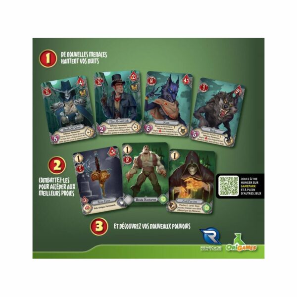 Plongez dans l'univers sombre et mystérieux du jeu de société The Hunger - Au Clair De La Lune. Survivez aux aléas de la nuit et terrassez vos ennemis pour rester en vie!