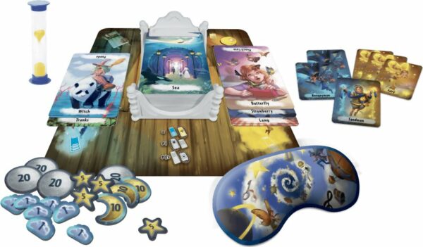 Dans When I Dream, les joueurs incarnent à tour de rôle un rêveur. Lorsque vous endossez ce rôle, votre mission est simple : vous avez un bandeau sur les yeux et vous devez deviner un maximum de mots dans le temps imparti. Mais attention, votre tâche ne s’arrête pas là, car une fois le sablier écoulé, vous devrez raconter votre rêve avec les mots devinés. Soyez donc rapide et habile d’esprit et surtout n’oubliez pas de faire marcher votre mémoire !